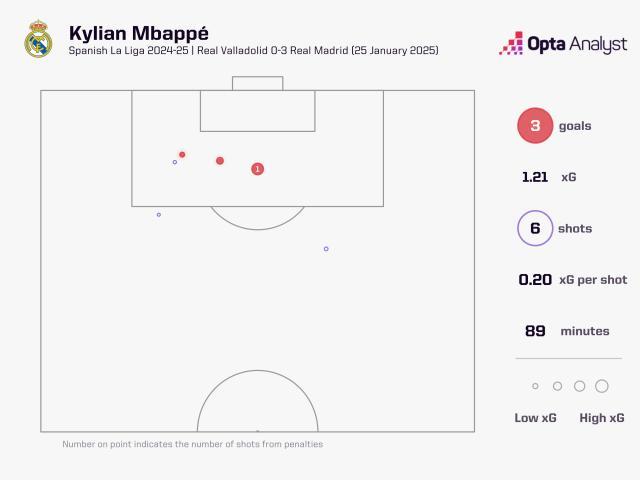 今晨西甲第21轮,皇马客场3比0击败巴拉多利德,西超杯决赛失利后各线4连胜且每场至少净胜3球,姆巴佩取得加盟皇马以来首个帽子戏法。全场比赛,皇马控球68%,射门20比6,预期进球1.90比0.19。
